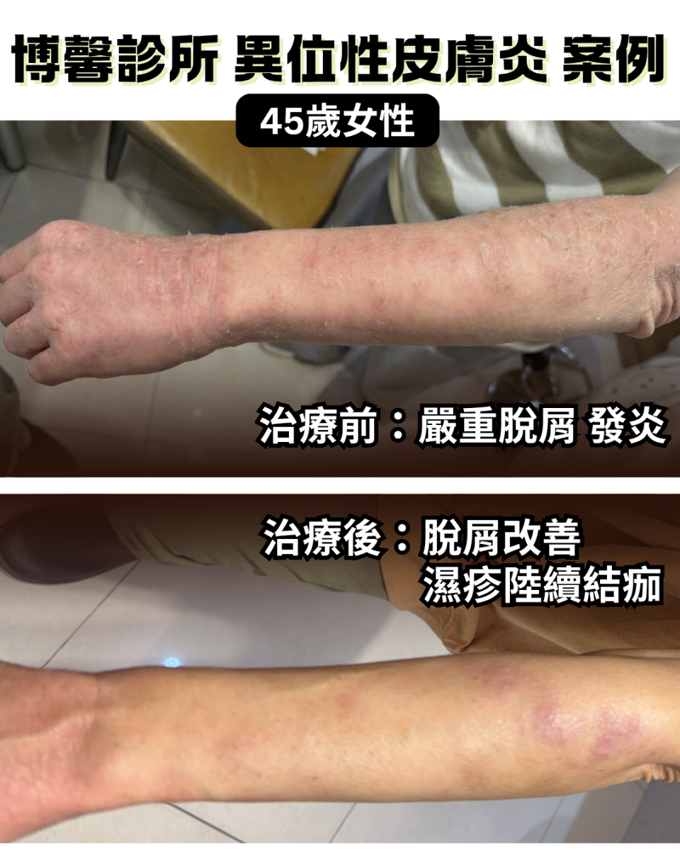 多年來,口服藥、外用藥膏從未間斷,始終無法根治;克制不了的搔抓,已使皮膚出現苔癬樣的變化;醫師總說要學習與慢性病共存,她也很努力的忍受了四十幾年。